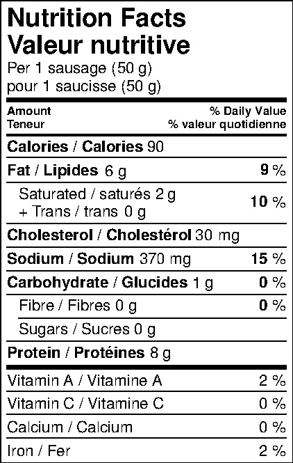 Pork, water, chicken, potato starch, salt, sodium phosphates, dextrose, spices, sodium erythorbate, spice extracts, sodium nitrite, smoke.
