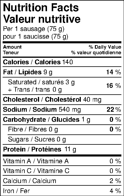Pork, water, potato starch, salt, sodium phosphates, spices, dextrose, sugar, sodium erythorbate, sodium nitrite, spice extracts, smoke.