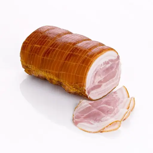 Crafted from the finest cuts of pork, Rolled Smoked Bacon is slow-cured and delicately smoked to perfection, offering a rich, smoky aroma and a melt-in-your-mouth texture. Rolled for a unique, tender bite, each slice is a harmonious balance of crispy edges and savory, succulent meat, making it the perfect addition to breakfast dishes, sandwiches, or gourmet salads.